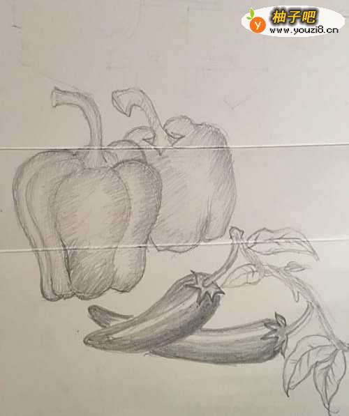 辣椒 茄科 一年生或多年生草本植物 原产于墨西哥 果实形状为长圆形 和圆锥形 还有尖圆形 不成熟为绿色 成熟了为红色和紫色 红色最常见 辣椒中含有辣椒素 能增进食欲 辣椒营养丰富 辣椒中的维生素C的含有量在所有蔬菜中位居第一 下面我们就画画辣椒的铅笔画