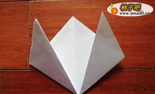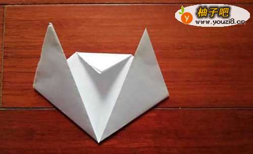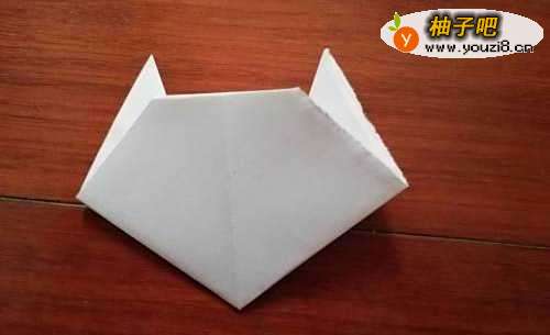 3折出猫咪的耳朵,注意两只耳朵中间留有空隙