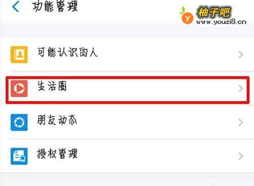 5进入“功能管理”页面之后,我们点击打开“生活圈”