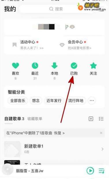 QQ音乐中如何查看自己已购歌曲和兑换专辑