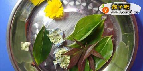 把所需要的叶子和花全部放在一个铁盘子里,这样在找花和叶时会比较方便。而且孩子在盘子里找素材时,花和叶也不会掉在地上造成损坏。