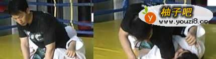 1.在全封闭防守时,单手控制对方一侧手臂(五指并拢勾住)。腰腹发力将身体向控制手臂一侧坐起。
