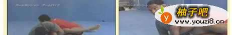 33.抓紧后利用身体自重,腰部发力旋转将对方带倒。这时双方身体位置由原来||型变成X型。同侧脚环勾住对方腰部,另一侧腿屈膝蹬地夹紧对方身体以防止技术变形和对手翻转逃脱。将已控制的手臂向斜上方推起已降服对方。