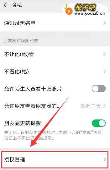 5然后,在忌缝趣隐私的页面,找到授权管理,如图所示