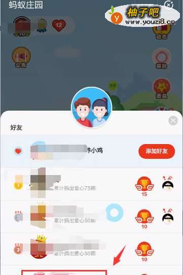 2进入蚂蚁庄园,先喂你的小鸡,点击好友,如下图所示