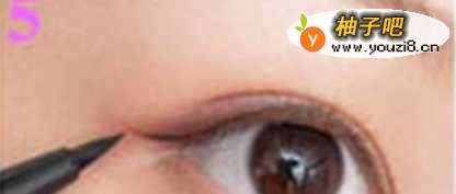 5对前面作的棕色眼影基础眼线进行加深处理,按着线条拉出一条细细的眼线并在眼角出稍微提拉。