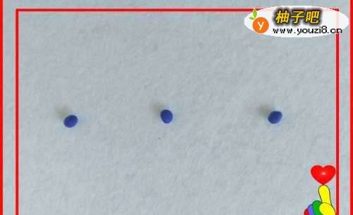 12取蓝色彩泥适量,滚搓成三个小圆球。