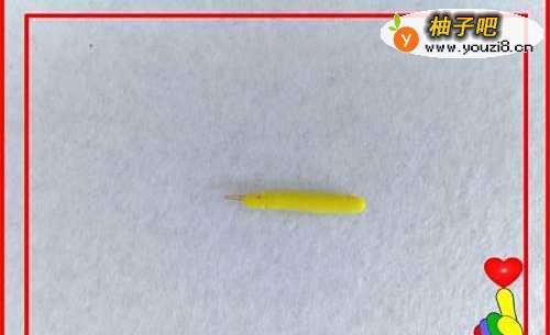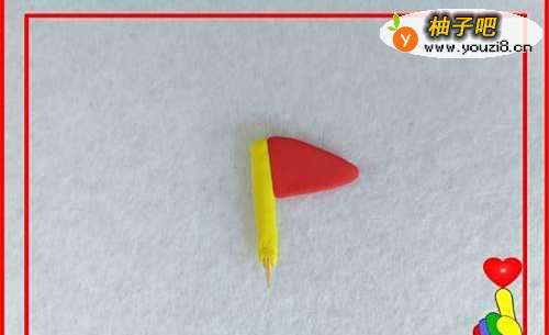 15取黄色彩泥适量,包裹在牙签棒上,作为“旗杆”。