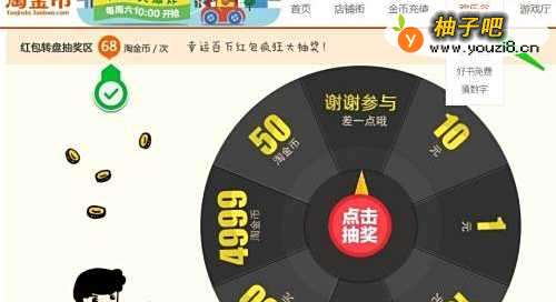 点击 弹出淘金币充话费及淘金币游戏充值(充Q币)