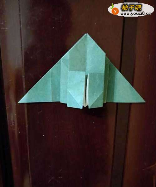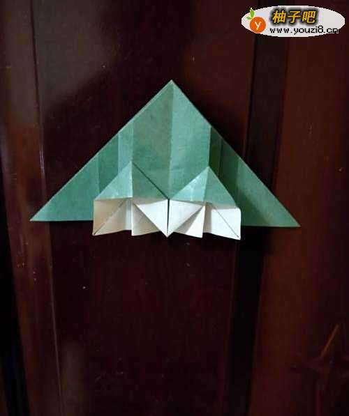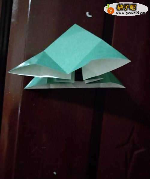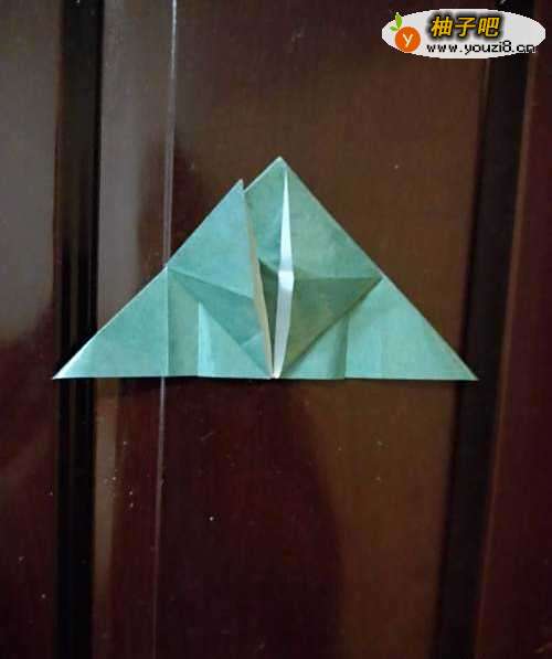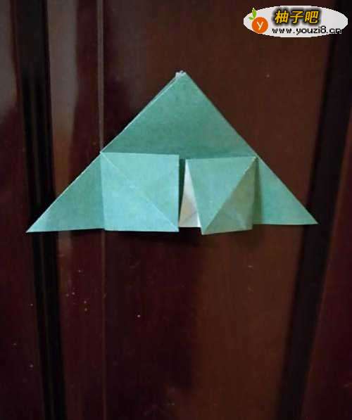 2表层左右两个3角形,从开口处打开,折成2个小正方形;如图