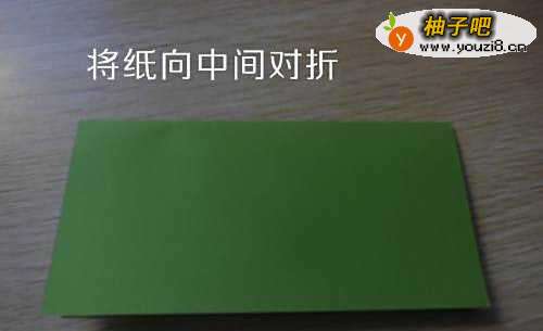 2步骤二:将彩纸横向对折打开,打开后竖向对折再打开。如图