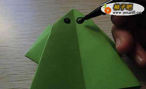 9步骤九:用准备好的黑色彩笔画上青蛙的眼睛。好了完成,作品展示时间。