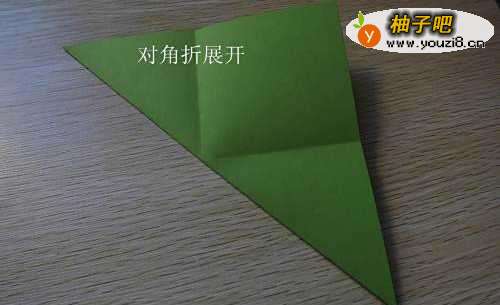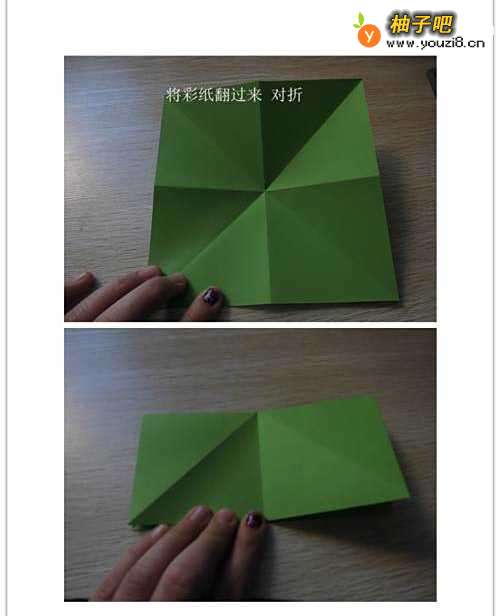 3步骤三:将彩纸对角折,两面均如图操作后打开。
