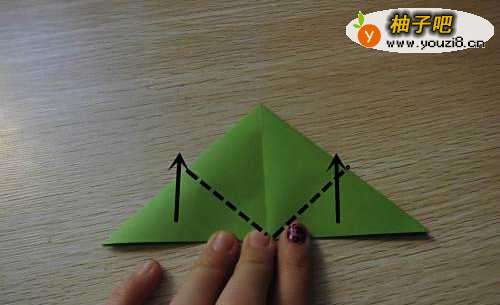 6步骤六:按照图上所画虚线向上折,两个角都如此操作,如图所示。