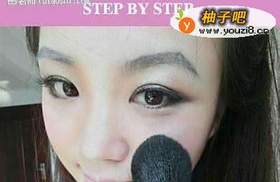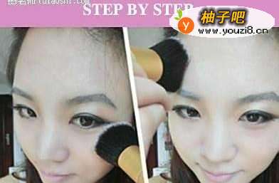 13用咖啡色修容粉,刷眼头、鼻子两翼、太阳穴部分,达到阴影效果。