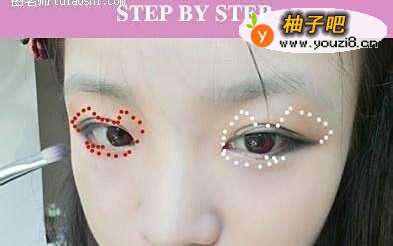 7用深咖啡色眼影从中间开始向眼尾眼神,画在眼皮内部分处,下眼影画中间部分就ok。