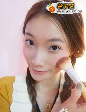 9最后再用大刷子沾取粉粉的腮红,由下往上的刷在笑肌上方,白里透红的好气色马上就有了。