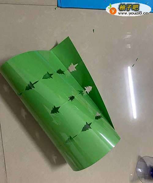 2其次,就可以把剪好的图纸围起来,用胶带粘贴固定形状,上下再剪两个封住(灯光可以直接投放在里面,或者像我一样把它固定在一个位置)