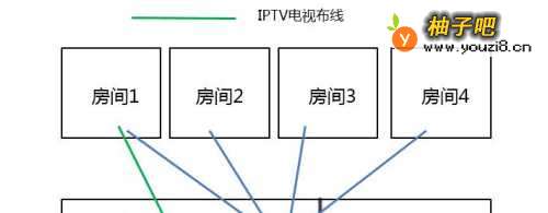 客厅布线:弱电箱到客厅网络汇聚节点至少需要拉两条网线,其中一条用于宽带上网,一条用于连接IPTV电视盒子;