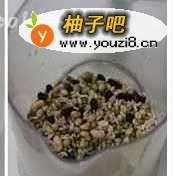 主料:燕麦米1/2杯、黄豆1/2杯、绿豆1/3杯、黑豆1/3杯、花生1/3杯