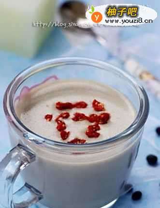 6时间到后,将打好的五色露过筛,滤去残渣,放凉后,加入少许枸杞饮用。