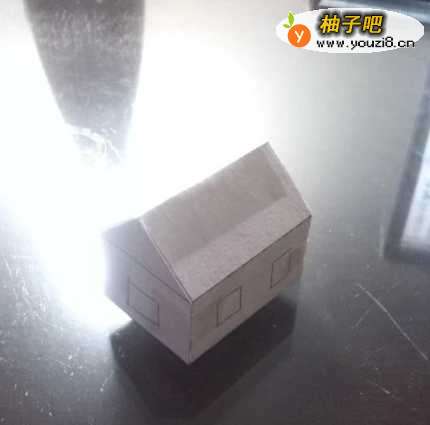 5然后把它剪下来,并画上门和窗。可以把门的边边剪一下,做成一个可开关的门。