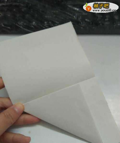 5随后,我们翻过来,把上面翻到右侧,把右侧的角向左侧折如图。