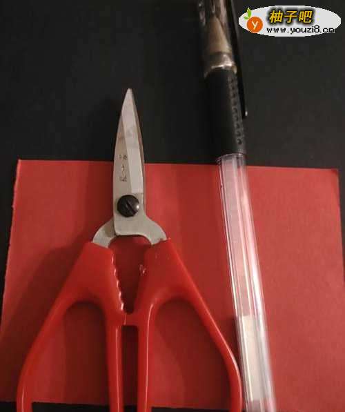 第一步,我们先准备好一张纸、笔和一把剪刀。