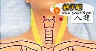 取穴方法:取穴时,人呈正坐或仰靠的姿势,人迎穴位于颈部,前颈喉结外侧大约3厘米,当胸锁乳突肌的前缘,颈总动脉搏动处。