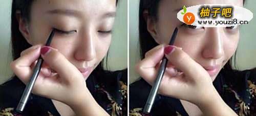 3Step3:既然要装嫩那就离不开无辜的眼神,所以上扬的眼线一定不可以,化一条随着眼形自然延伸的内眼线就足够了,目的在于让眼睛更有光彩。眼影呢?可以忽略。