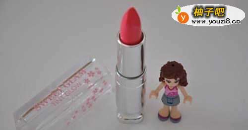 6Step6: 重点来啦,没错就是唇膏,唇膏要用和腮红同一色系的颜色,用护唇膏给唇部打造水润感也是本款妆容唇部的基础,不需要特别明确嘴唇的边缘,最后别忘记在唇珠上点缀一点唇彩营造嘟嘟唇。