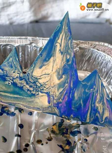 8然后我做了同样的第一次,倾斜它,直到我满意的设计。这一次,我让它以90度的角度坐了几分钟,这样效果就像滴到了山脉的底部。