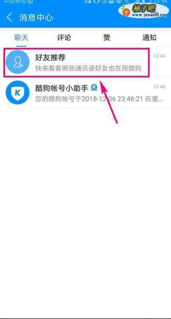 5进入邮件列表以后,点击列表顶部位置的【好友推荐】选项,如图所示。
