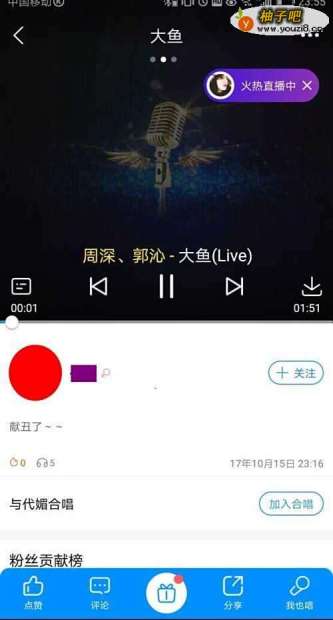 7点击蓝色文字后,就进入到歌曲的播放页面了,现在你就可以听你好友唱的歌曲了。