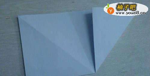 2折痕在下,将右边正方形向左上对折。翻转,后面也如此折。
