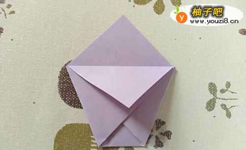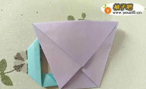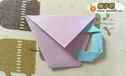 6然后翻转过来,继续上面的角向下折,杯的身子做好了。