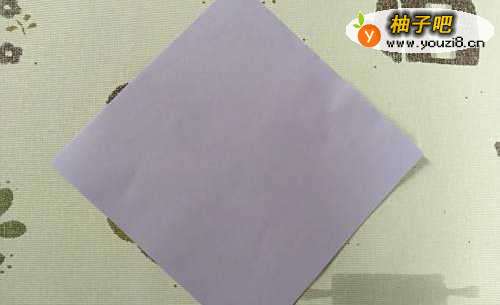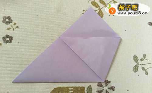 2我们先来做杯的身子,纸先放好位置,然后对角对折。