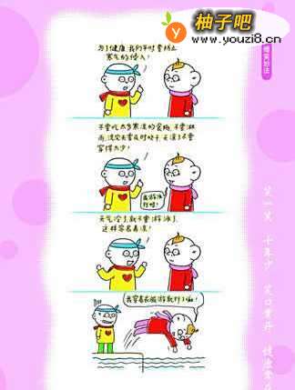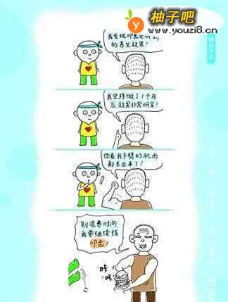 养生,在当下是一个很受大家关注的话题。百科定义:养生,就是指通过各种方法颐养生命、增强体质、预防疾病,从而达到延年益寿的一种医事活动。所谓生,就是生命、生存、生长之意;所谓养,即保养、调养、补养之意。总之,养生就是保养生命的意思。以下的趣味小漫画让我们在微笑中学会养生之道,大家记得都要看哦!如果你都学会了,不要忘记告诉你所爱的人,让大家都健康快乐地生活~~