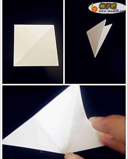 准备一张正方形的纸,将其对折成8等份,找到中心点位置朝下,如下图: