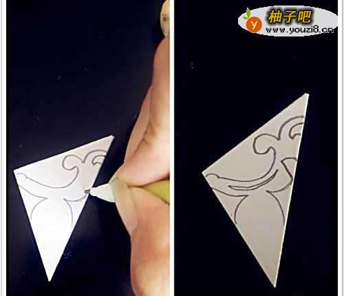 3把设计好的图案画在纸上,纸的位置一定要注意,中心点一定要找好不然后期剪完之后就没有连接。