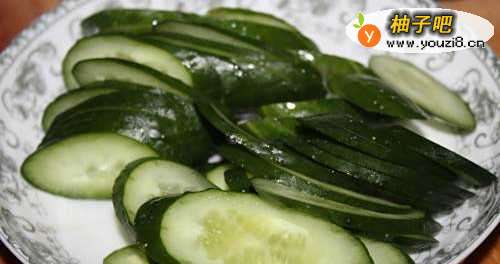 首先将黄瓜洗净切片,猪肉洗净切片备用。