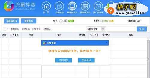 2登录后,我们可以看到“刷网站人气”一栏,点击后,会弹出如下图。我们选择“添加任务”。