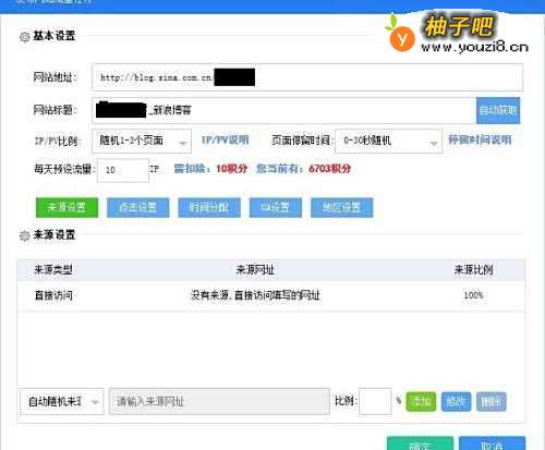 3在选择后,就会有弹出窗口,这时候我们填上我们的博客地址,软件会自动获取我们博客名字。然后填写“每天预设流量”的IP数,如下图。