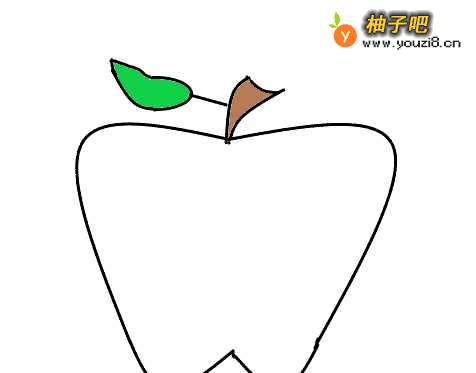 先画一个苹果的叶子和树枝。