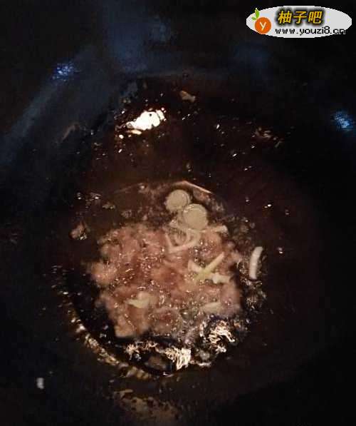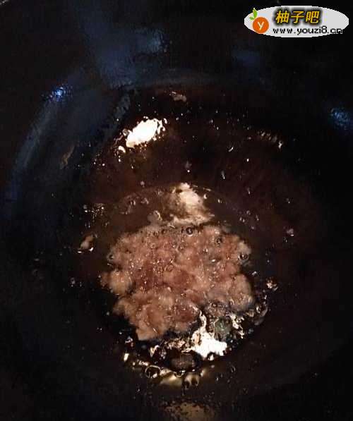 3锅中放入食用油,放入肉末,用铲子把肉末分开。