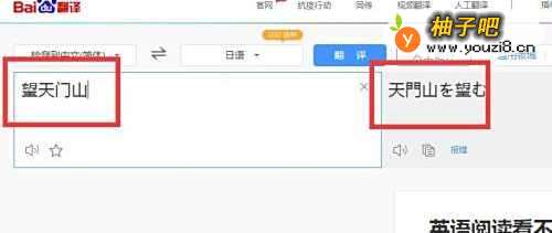6最后我们就看到了“望天门山”的日语翻译了,它的日语翻译为“天門山を望む”,如图所示