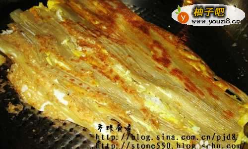 冷面都是泡着吃,烤着能好吃吗?话说烤冷面工艺简单,几分钟就能做好一个,但是味道真挺赞的,酸甜可口,还有鸡蛋的香味。俺们家肖胖就是烤冷面的绝对拥护者。去年,一到周末他就央求我带他去省图看书,来回一趟坐车两个小时,去了几次我就发现了端倪,一到中午他就喊饿,然后就央求我给他买份烤冷面,吃的舔嘴咂舌的,看那样我给他买三份也能吃进去。后来他发现我家旁边的木兰商场门口也有卖的,就再也不去省图了,看来读书是假,吃烤冷面是真。即使现在,每周三晚上他上英语课,上课前吃两个蛋堡,下课后吃份烤冷面已经形成了条件反射,我就说你学一节英语可好,上课要交三十多元,吃蛋堡和烤冷面还要花上十元,这成本也太高了哈。