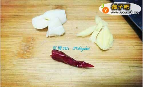 4准备少许辅料:生姜、蒜头、辣椒干,分别处理成姜丝、蒜末、辣椒段。打开电磁炉,往锅内加入适量的油,放入辅料爆香国盯一会。