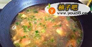 9水开就可以下入切好的面片,这里要注意,面片要一片一片的下入,不能像面条一样一下倒进去,那样就会粘在一起哦!