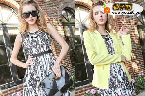1、印花雪纺连衣裙+小外套:追逐潮流的时尚印花连衣裙以强劲的势头迅速成为这个季节潮人们最受追捧的款式。颇具个性的印花图案,随时宣扬着自己的个性。搭配上靓丽色彩修身的小外套,在万物复苏的初春,嫩嫩的色彩穿上心情变好好,散发淑女气质。